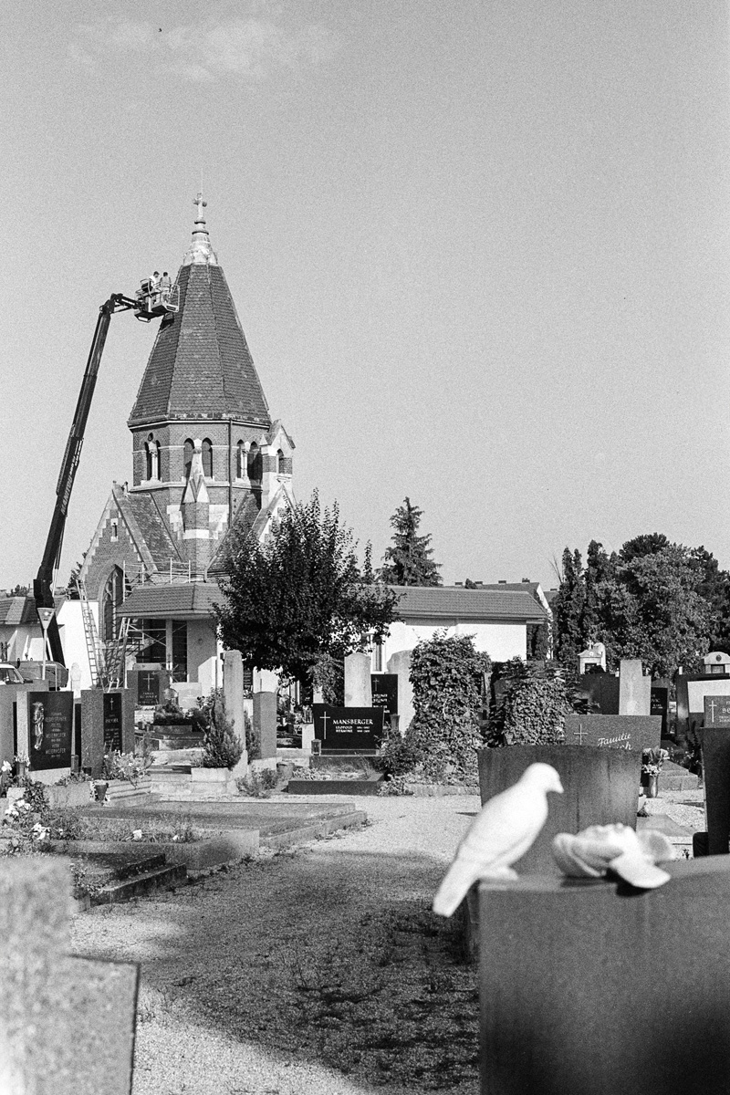 Den Friedhof in Wr. Neustadt zu besuchen war purem Zufall geschuldet, der Entschluss ihn fotografisch über einen längeren Zeitraum zu dokumentieren, stand schon vorher fest. Was am Ende entstehen wird, weiß ich nicht. Was zwischendurch entsteht, wird peu a peu auf der Homepage veröffentlicht, die für mich stimmigsten Aufnahmen der ersten belichteten Filme im Mai zeige ich in der Rubrik „Der Rest ist Schweigen“, weitere Aufnahmen werden folgen…