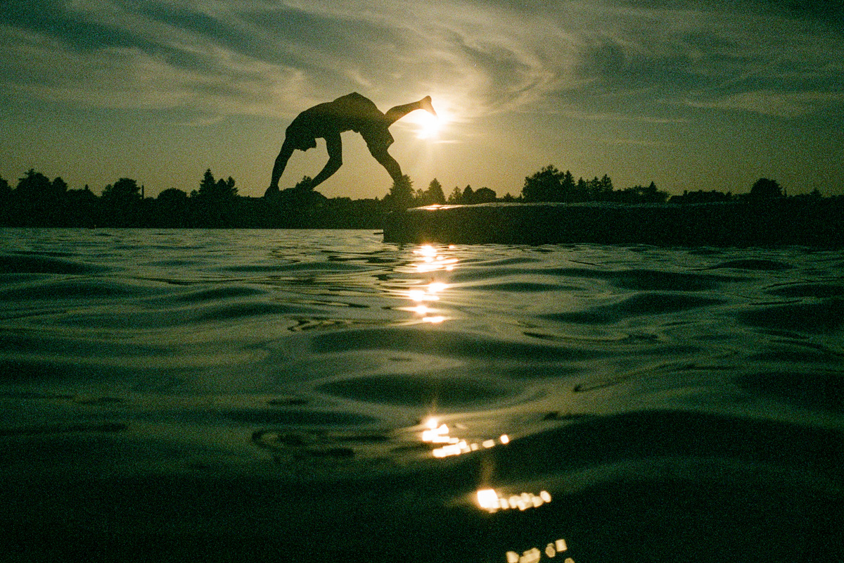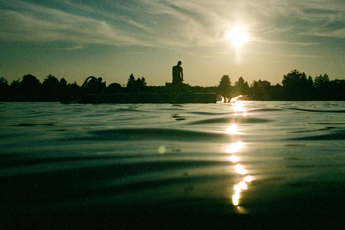 Apropos extreme Hitze (die hoffentlich bald ein Ende haben wird): Um Abkühlung und Fotografie unter einen Hut zu bringen habe ich mir 1) eine Saisonkarte für den Neufelder See gekauft und bin 2) meinem Standpunkt nach Reduktion des fotografischen Equipments untreu geworden und habe aus Japan eine Unterwasserkamera importiert (analog, what else?).