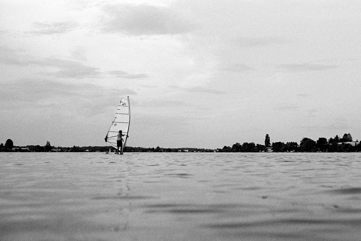 Zweiter Versuch am Neufelder See – dem abgelaufenen Farbfilm habe ich dieses Mal mehr Licht gegönnt (ja, ich hatte tatsächlich noch eine zweite Filmrolle im Kühlschrank…) und dadurch wieder eine längere Verschlusszeit riskiert. Bis auf die Fische, die eindeutig zu flink unterwegs waren, sind immerhin ein paar Aufnahmen unter Wasser nicht völlig unscharf. Aber meine Favoriten sind ohnehin die Aufnahmen vom Wasser aus knapp über der Oberfläche geschossen, gewürzt mit sattem Gegenlicht – feine Sache!