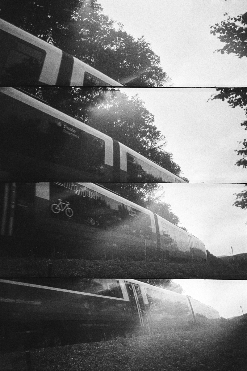 Der erste Versuch mit einem ASA100 SW Film hat schnell gezeigt, dass ein schnellerer Film die bessere Wahl gewesen wäre. Der zweite Versuch mit einem 400ASA Farbfilm, der 2013 abgelaufen ist, hat mir gezeigt, dass er durchaus ein wenig mehr Belichtung vertragen hätte…